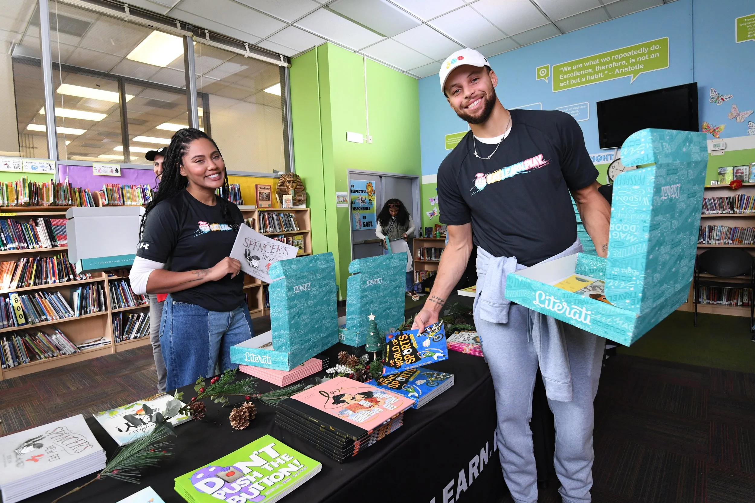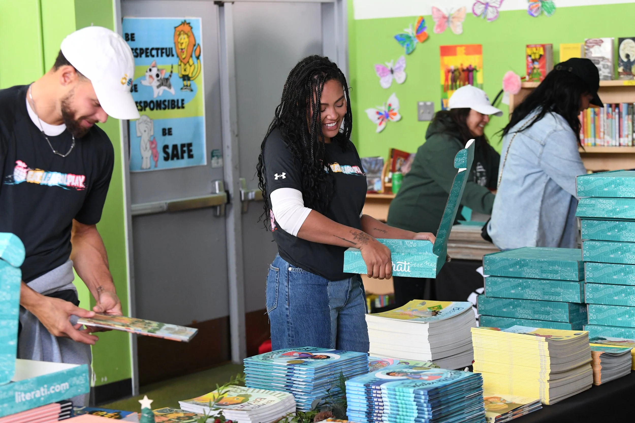 We are celebrating the 11th annual Christmas with the Currys. For this year’s capstone event, Eat. Learn. Play. brought the joy of reading to every elementary school student (17,000) in the Oakland Unified School District—delivering beautiful gift boxes from Literati full of books to students at all 49 OUSD elementary schools. Each of the 17,000 holiday gift boxes included five books for each student (85,000 books total).