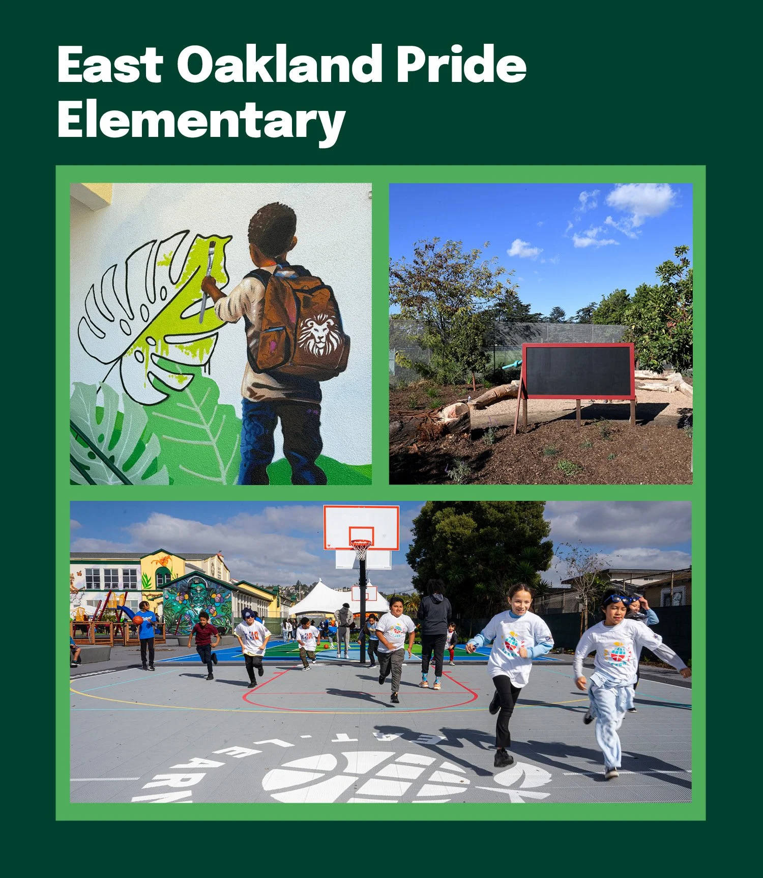 As part of our vision to transform the school experience for a generation of Oakland students, Eat. Learn. Play. has been working to ensure all Oakland elementary and middle school students have access to the resources, support, and spaces for kids to thrive and have great childhoods. Our work includes remodeling more than 25 public elementary schoolyards throughout Oakland by the end of 2026 to be the dream places for kids to play, learn, and spend time with their classmates.